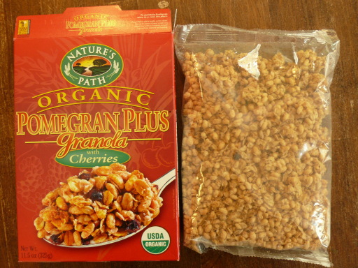 That spoon shows a syrupy mix of varied flakes, with several juicy cherry bits. The bag contains something that looks more like dog food than cereal, with one lone cherry nugget thrown in by itself.