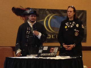 Apparently, someone told this group that CarolinaCon was a costume party. The pirate and the doctor win the prize for best costumes. But pay closer attention. These guys are smart — they have scoured the internet for cool mesh networking tools, and they have packaged them into a LiveCD distro called “Byzantium”. Imagine a disaster or political unrest scenario, where you would like to mesh together a group of users and share an internet connection. Keep an eye on this fledgling project. - 3:00pm – Hacking as an Act of War (G. Mark Hardy)