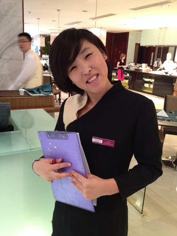 The trip to Beijing was uneventful, and we arrived at the very nice Crowne Plaza hotel. Every morning, we were greeted by the beautiful Chinese hostess, and then treated to a buffet that was a confluence of breakfast foods from every continent.